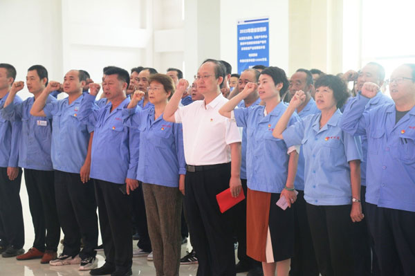 黨支部書記、董事長(zhǎng)王煥一,支部副書記、行政副總李蘭舟, 公司顧問王建民,副總經(jīng)理范俊英,副總經(jīng)理王錦松,公司總工程師王希偉,公司顧問段玉新等黨員領(lǐng)導(dǎo)干部,公司全體黨員、部分提出入黨申請(qǐng)的積極分子等110人參加或列席活動(dòng)。李蘭舟主持儀式。